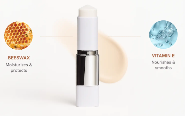Seraphina's Foundation Stick is a color-changing stick foundation that transforms from a white balm into a silky, tinted cream upon application.